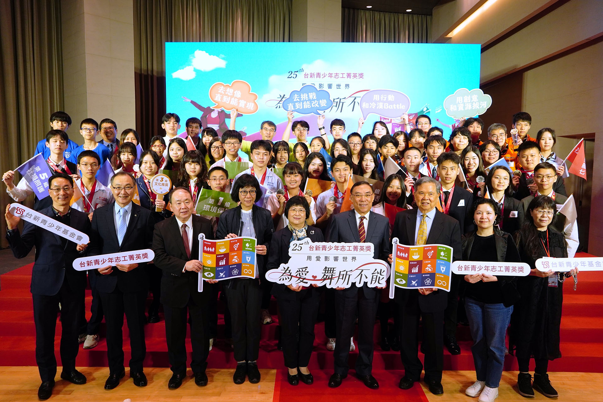 (2025/3/15) 台新青少年基金會於3月15日舉辦第25屆「台新青少年志工菁英獎」頒獎典禮,傑出志工獎得主榮獲副總統蕭美琴接見,肯定其卓越貢獻。今年以「為愛 舞所不能」為主軸,邀請國際舞蹈家簡珮如擔任代言人,鼓勵年輕人以志願服務跨越冷漠、突破不可能,同時邀金鐘獎得主潘信安導演執導影片,回顧歷屆代表性的志工故事,此外,基金會也將推出志工系列專題節目,紀錄歷屆獲獎志工的服務事蹟,將改變的力量擴展至社會。