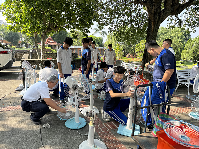 在眾多服務隊中,家電志工服務隊由電機科學長帶領學弟,深入社區免費檢修家電,幫助獨居長輩,讓科技成為溫暖的橋梁;美容科服務隊則透過義剪活動,不僅幫長輩修整儀容,還在寒暄互動中體會助人的價值;餐飲科志工服務隊將美食結合關懷,帶領長輩製作水果薄餅,促進青銀交流,讓長輩感受歡樂與陪伴。此外,學校鄰近參山國家公園,為維護環境整潔,各班級利用團體活動時間,投入清潔工作,也讓學生在實踐中深化品德教育的意義。
